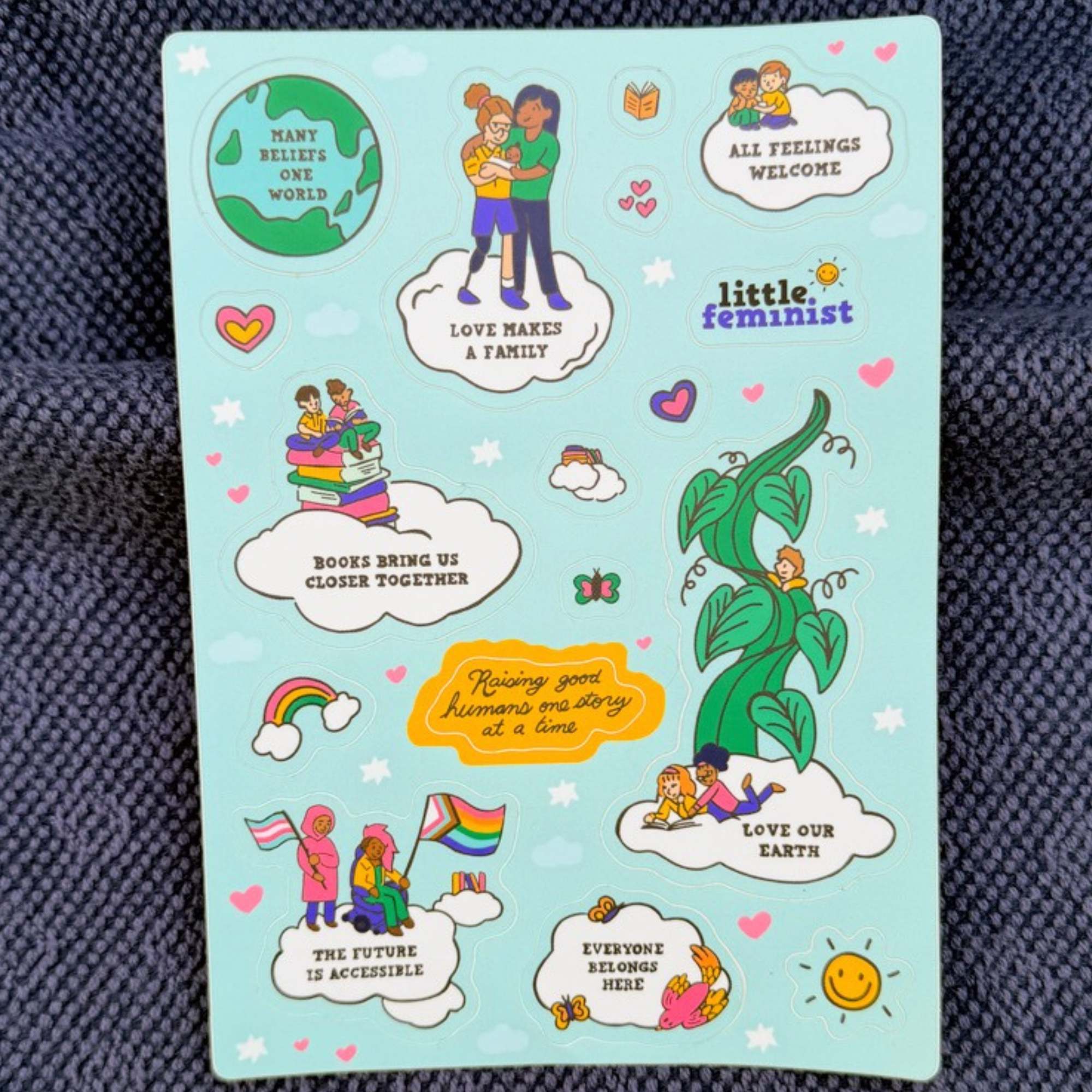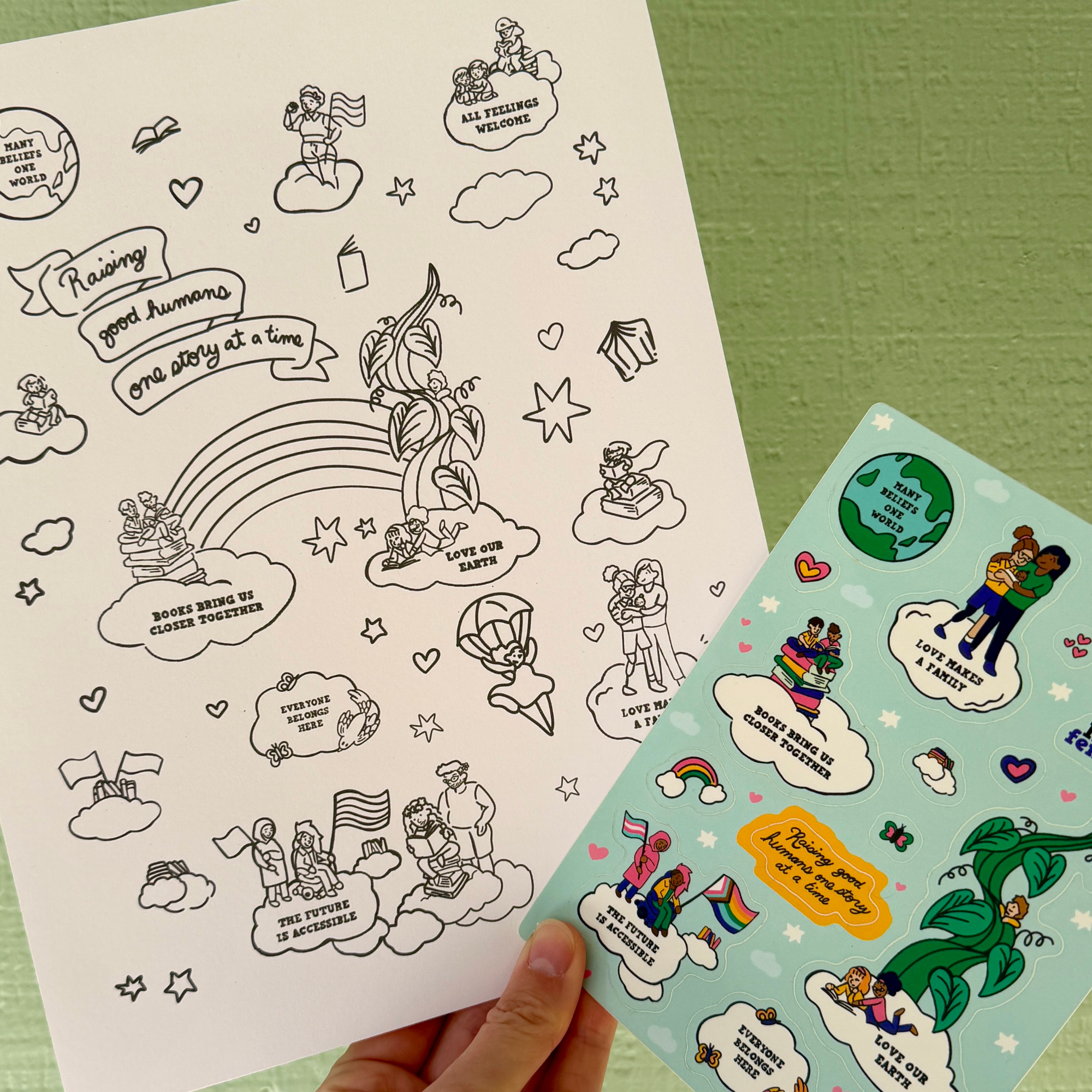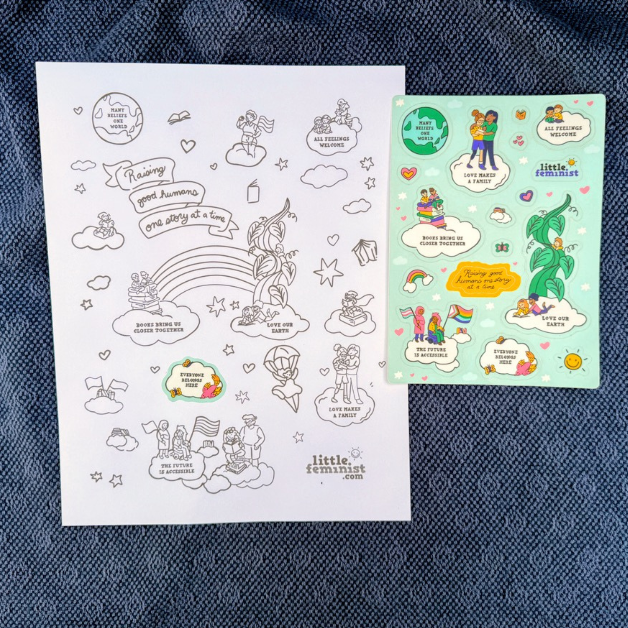 Featuring familiar Little Feminist themes like love, belonging, accessibility, and caring for our planet, these are perfect for decorating notebooks, water bottles, cards, or the matching coloring page.